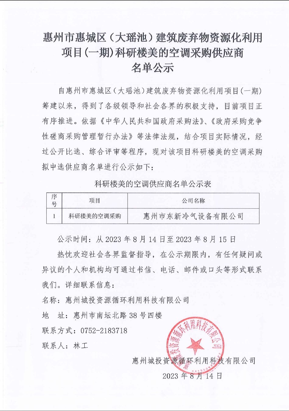 科研樓美的空調(diào)采購(gòu)供應(yīng)商名單公示