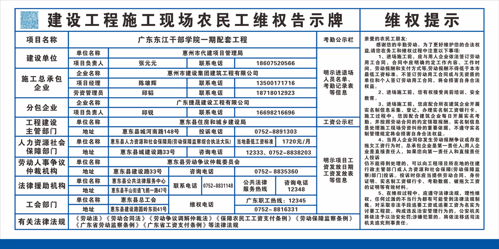 廣東東江干部學(xué)院一期配套工程農(nóng)民工維權(quán)告示牌